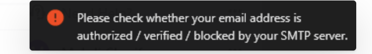 Error: Please check if your email address is authorized/ verified/ blocked by your SMTP server.