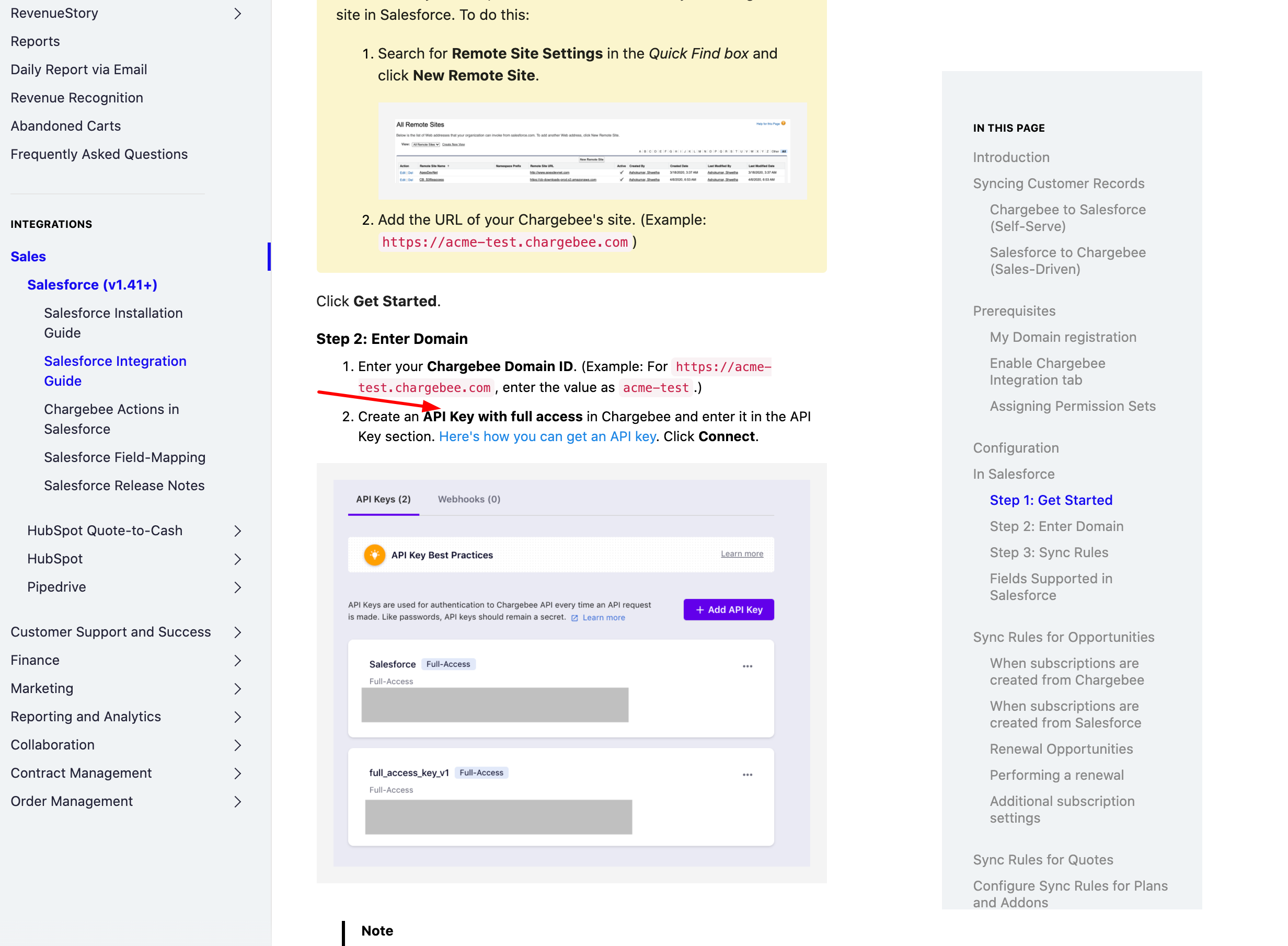 Also, for Salesforce integration, you will need to use a full-access API key as mentioned in this document.